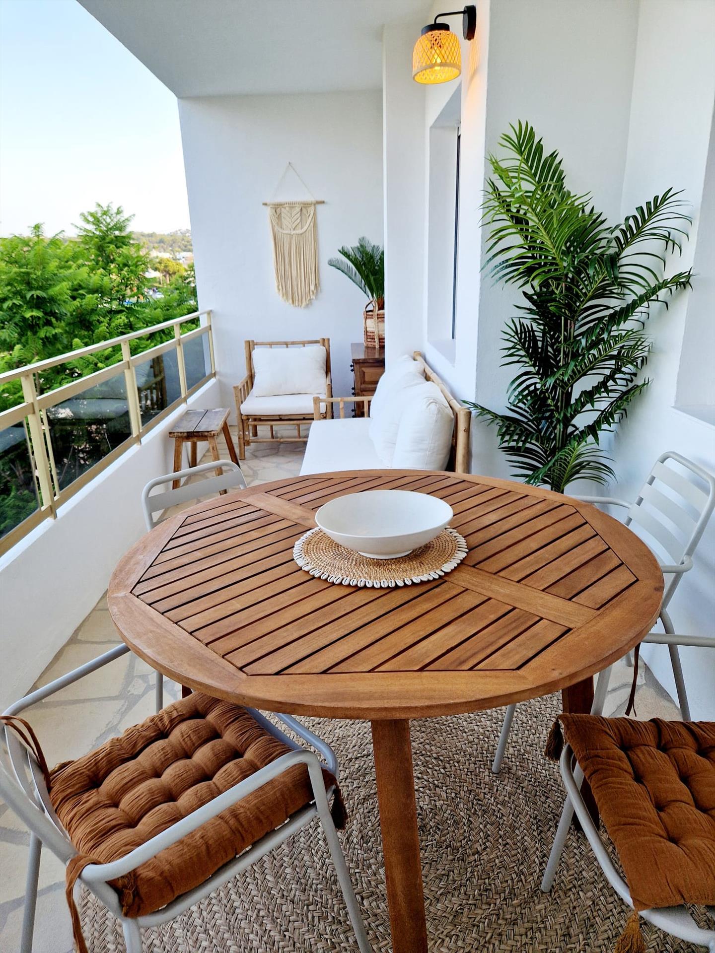 Este apartamento ofrece una combinación única de comodidades modernas y un ambiente moderno e ibicenco/boho. La espaciosa distribución ofrece amplio espacio habitable para 4 personas.