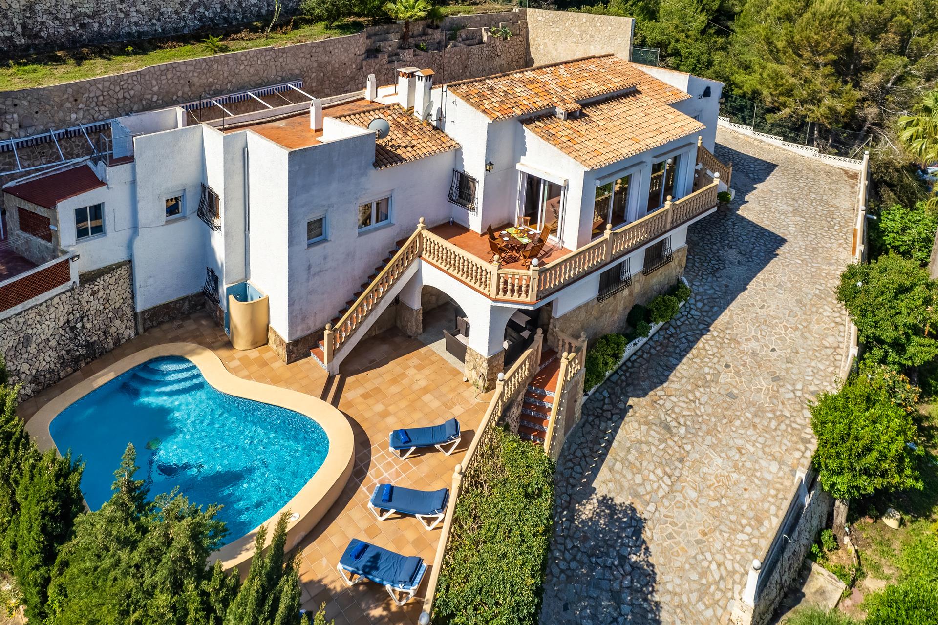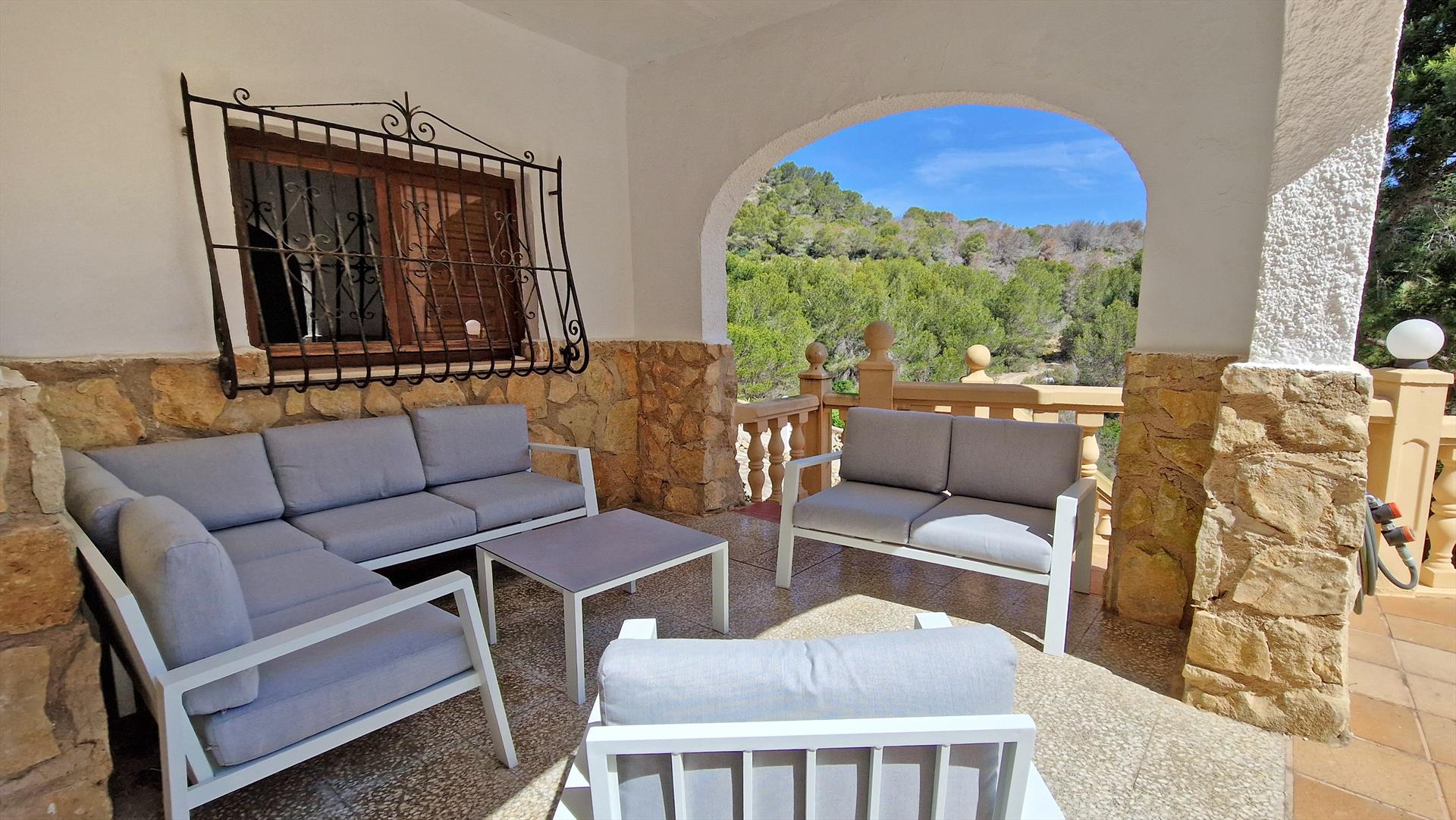 La villa cuenta con 5 dormitorios y 4 baños, distribuidos en 2 niveles. El alojamiento ofrece privacidad, un jardín con árboles y maravillosas vistas a las montañas. La proximidad a la playa, actividades deportivas y lugares de ocio hacen de esta villa un lugar ideal para pasar sus vacaciones en España con familia, amigos e incluso sus mascotas.