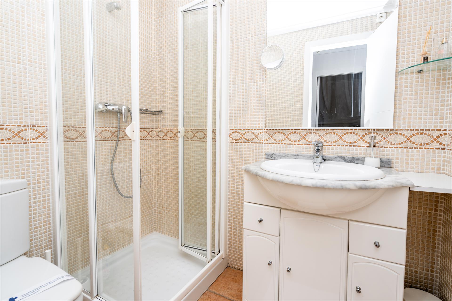 • Badezimmer mit Einzelwaschbecken, Dusche und WC