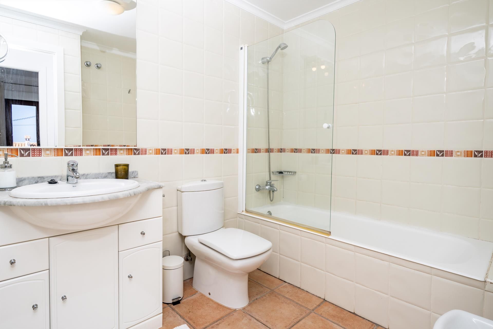 • Badezimmer mit Einzelwaschbecken, Badewanne und WC