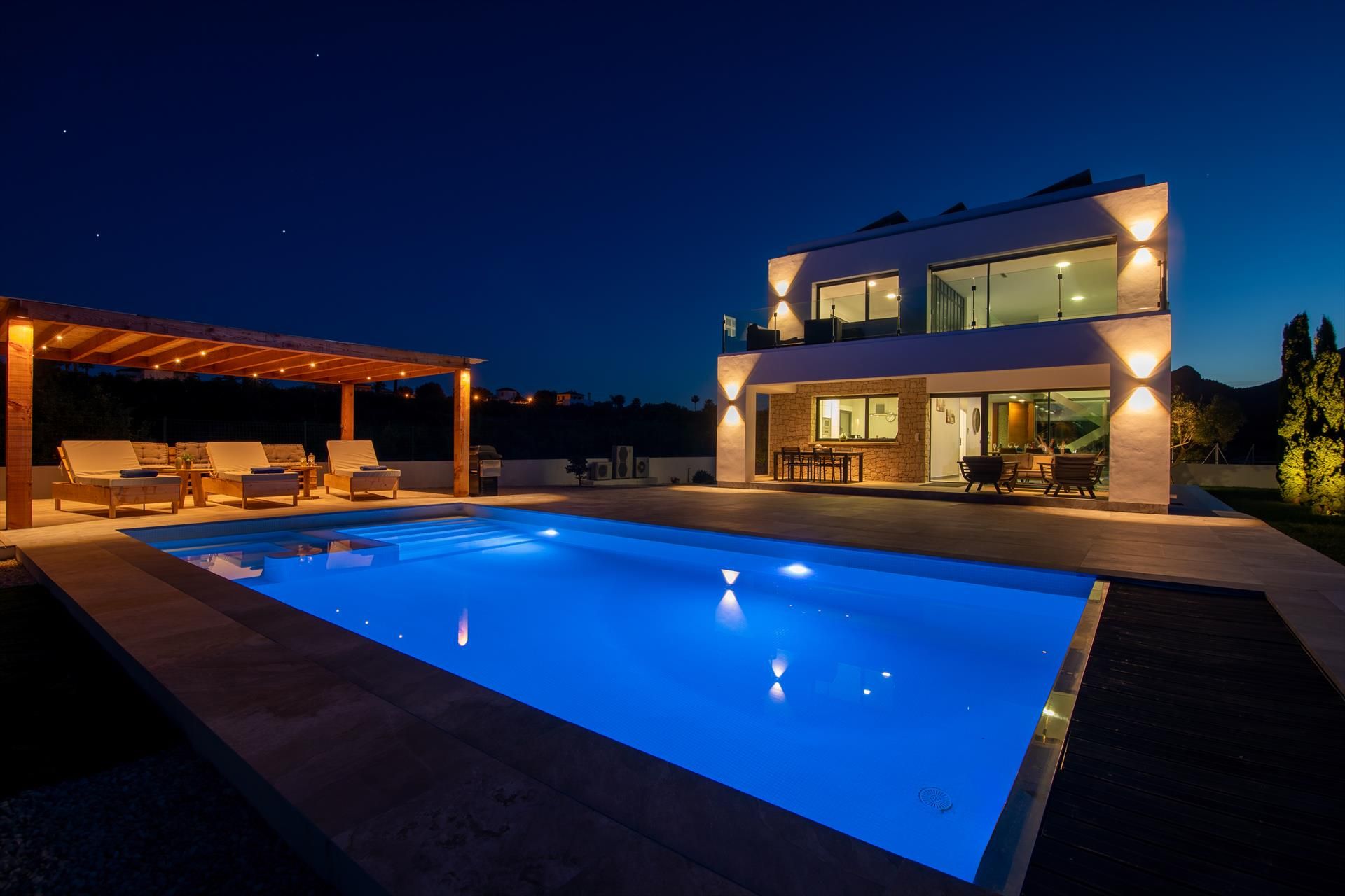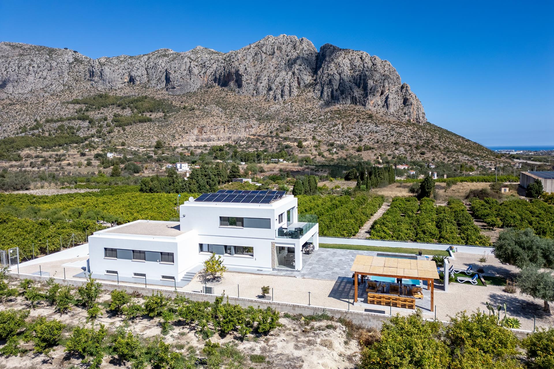 Moderne und komfortable Villa in Denia, Costa Blanca, Spanien mit privatem Pool für 10 Personen. Das Haus befindet sich in einer hügeligen und ländlichen Gegend.