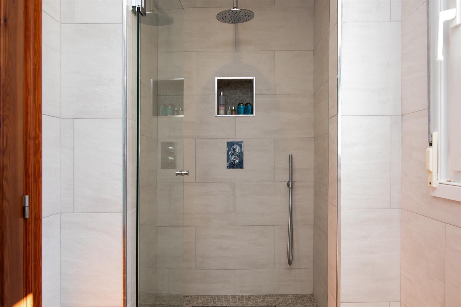 • Eigenes Badezimmer mit Einzelwaschbecken, Dusche, Toilette und Haartrockner