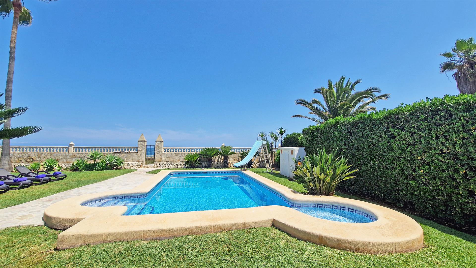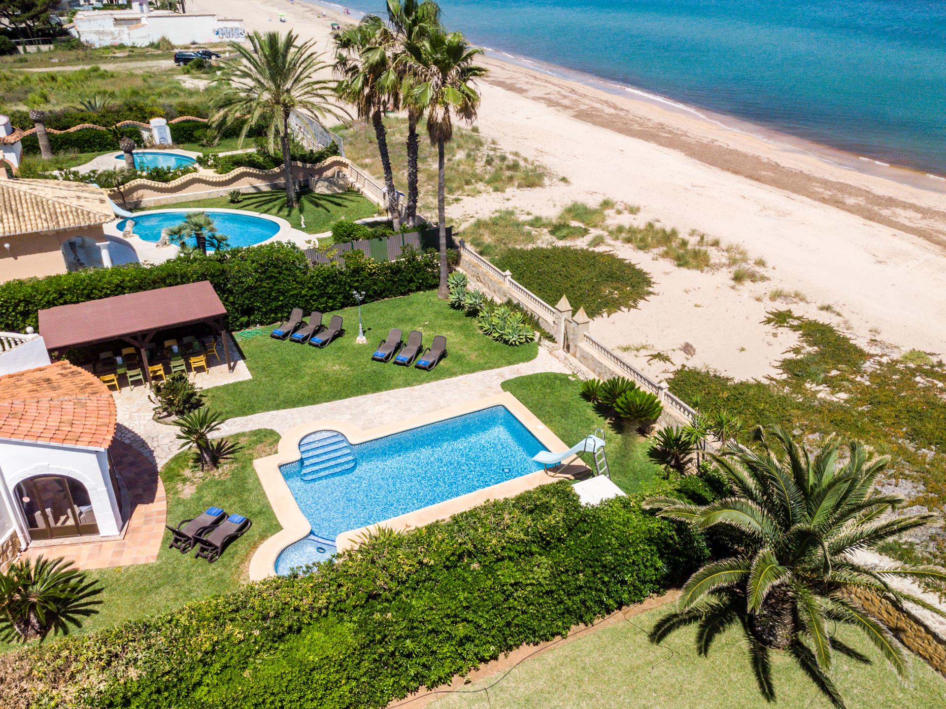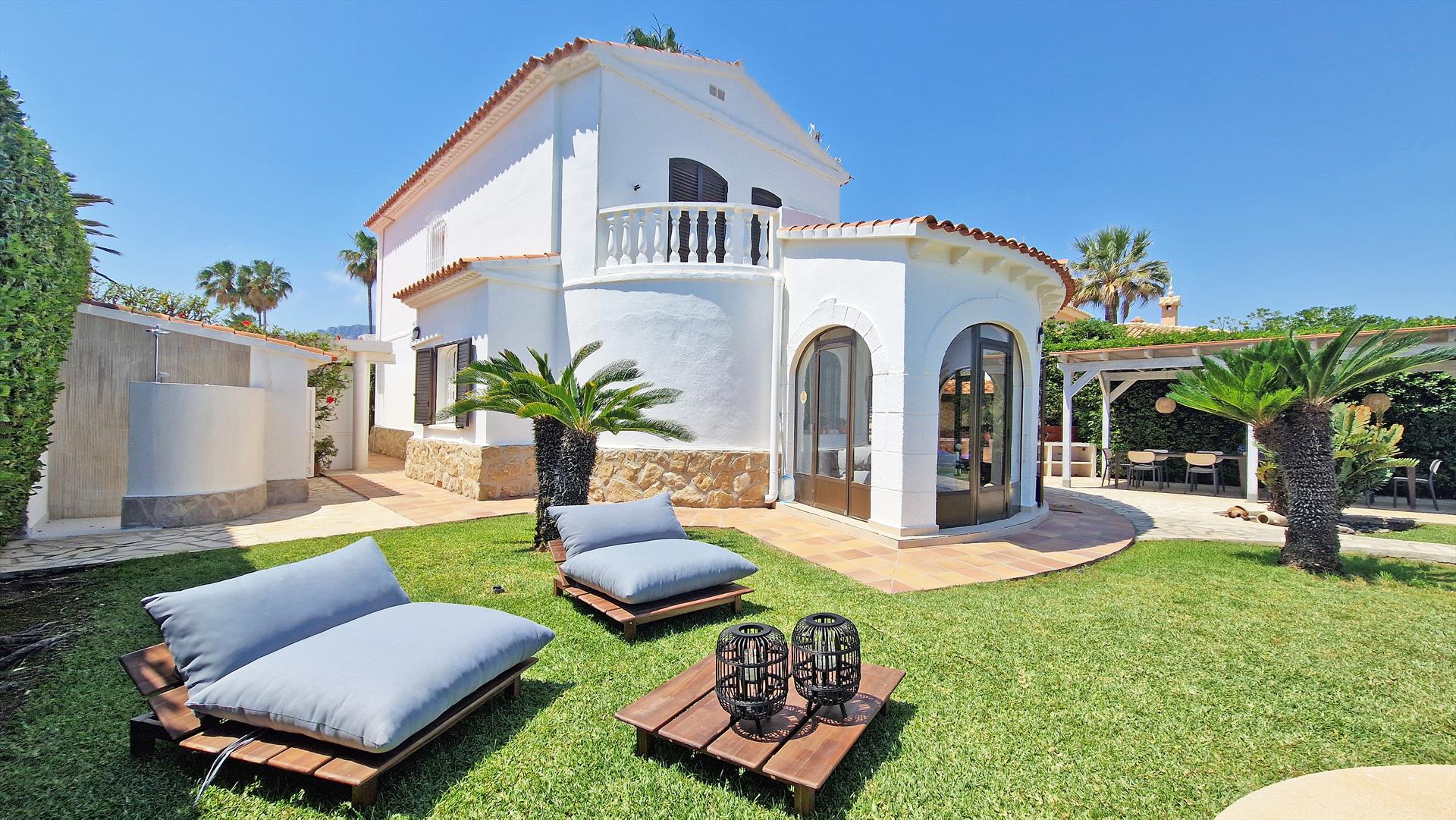 Villa in Denia, Costa Blanca, Spanien mit privatem Pool für 12 Personen. Das Haus befindet sich 25 m vom Almadrava-Strand entfernt.