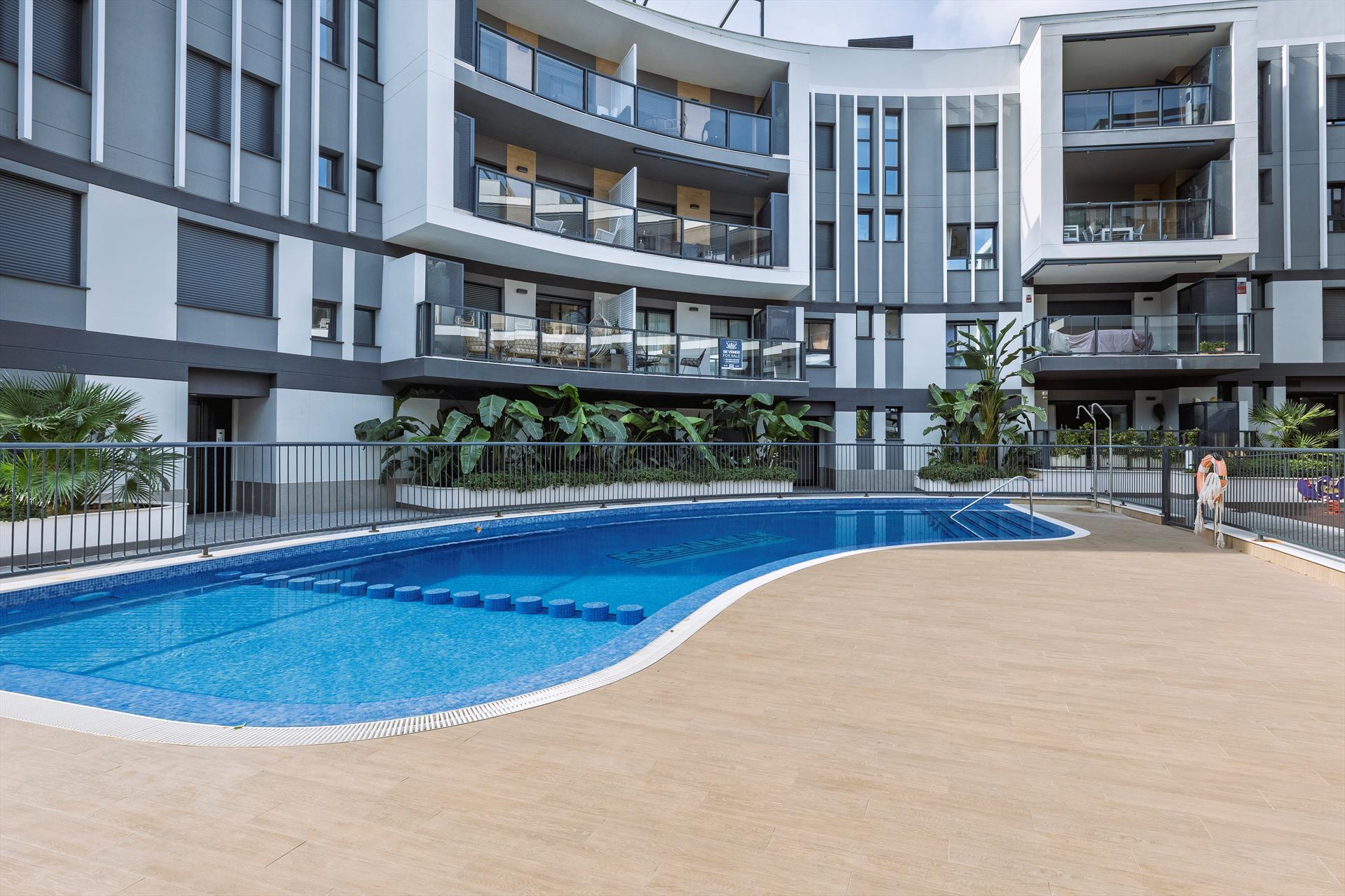 Apartment in Javea, Costa Blanca, Spanien mit Gemeinschaftspool für 4 Personen. Das Apartment verfügt über 2 Schlafzimmer und 2 Badezimmers. Die Unterkunft bietet wunderbare Ausblicke auf die Stadt.