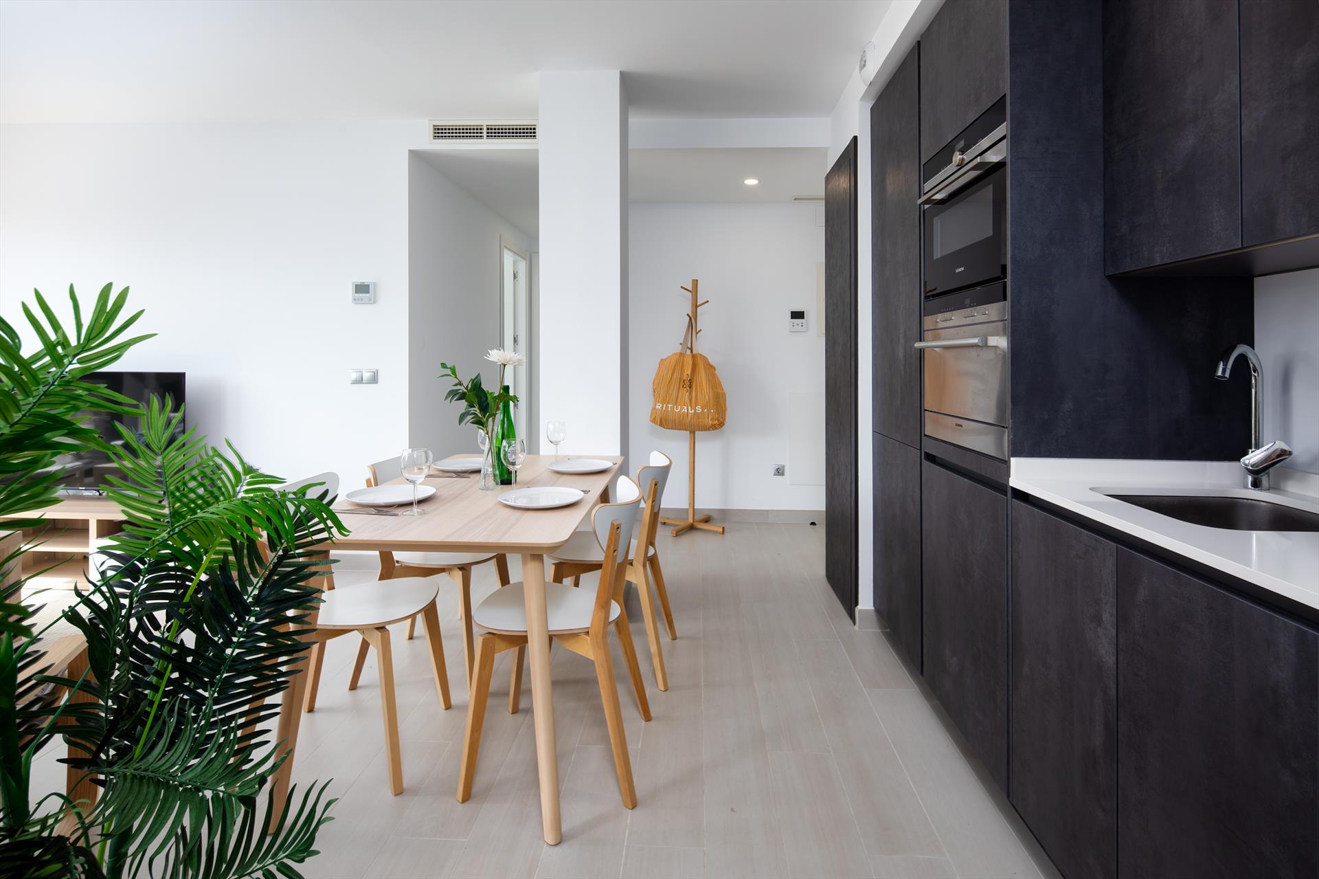 Modern and attractive apartment in Denia, Costa Blanca, Spain with communal pool for 4 people. The apartment is situated in a residential area, close to restaurants and bars, 500 m from Les Deveses beach and 3 km from El Vergel.