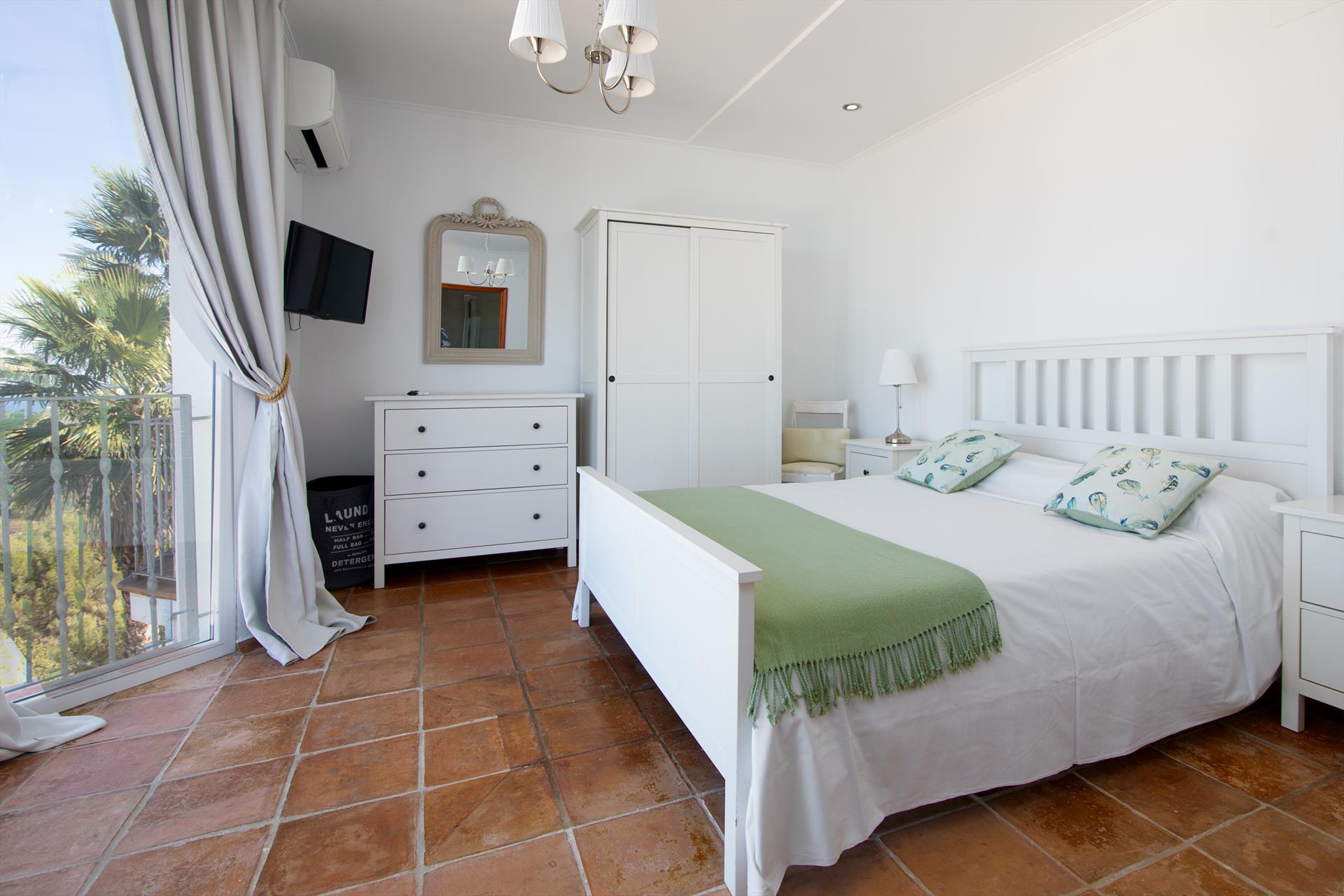 • bedroom with air conditioning, queen size bed (measuring 200 by 160cm), television and en-suite bathroom