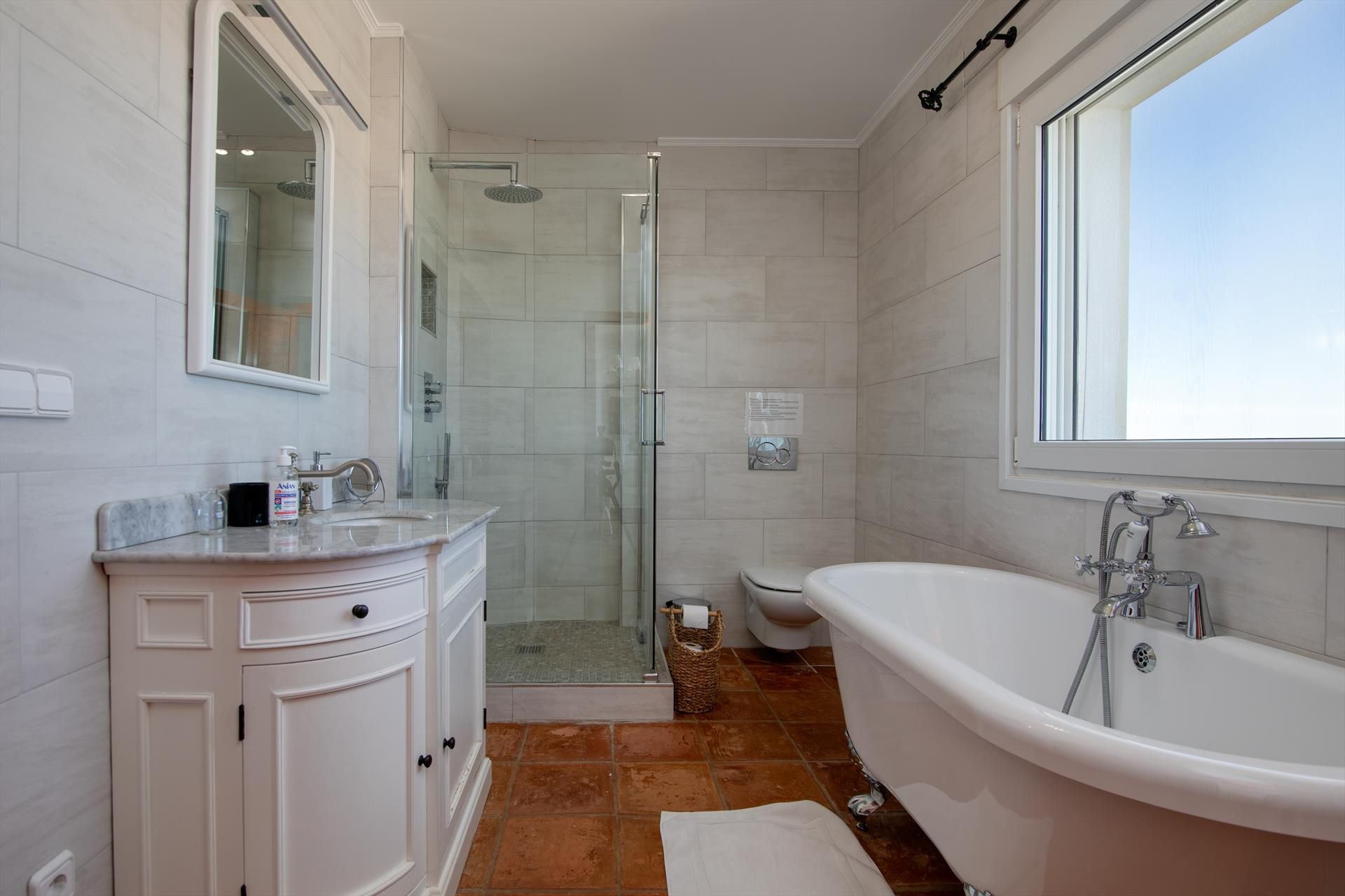 • 3 bedrooms with air conditioning, each with king size bed (measuring 200 by 180cm) and en-suite bathroom