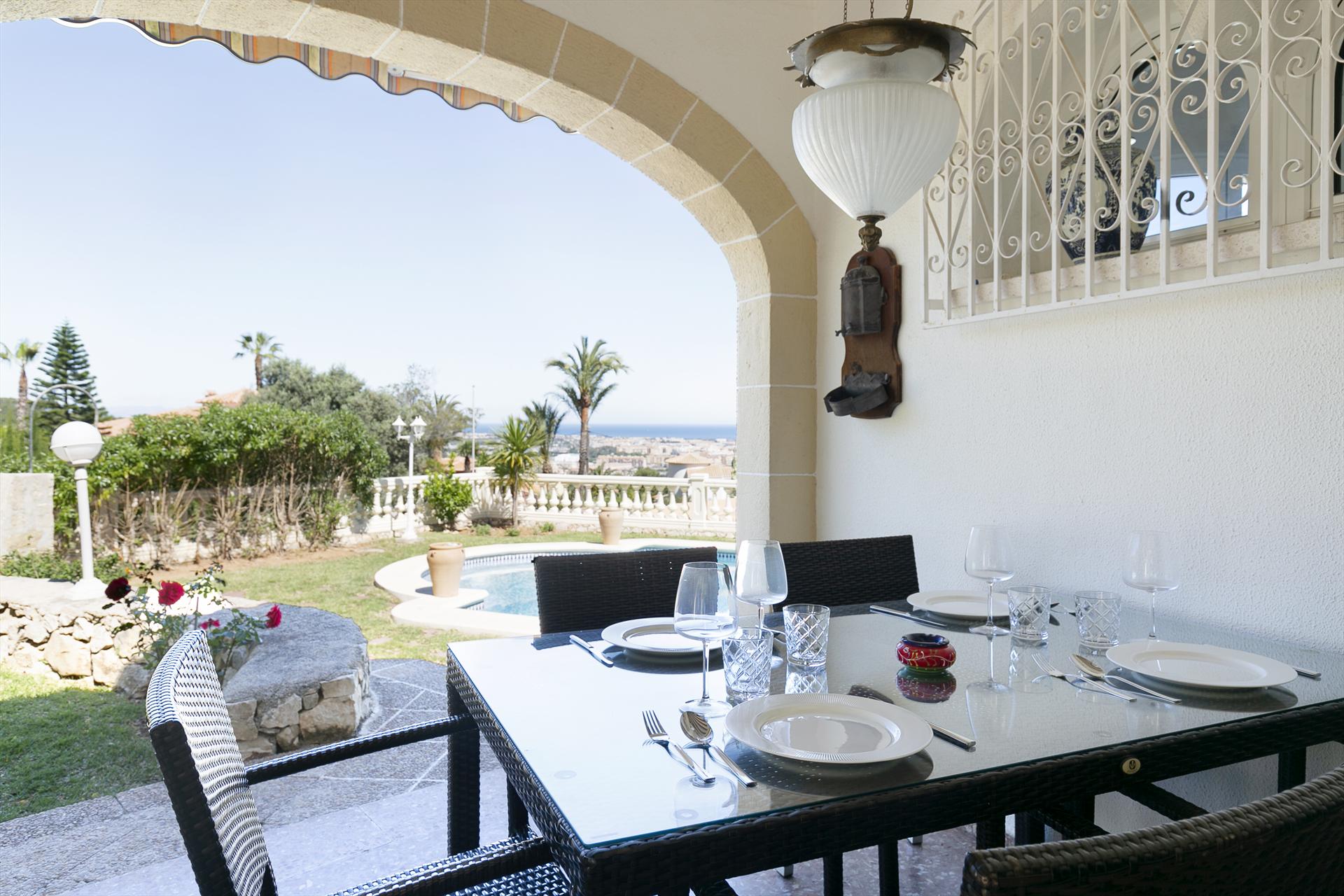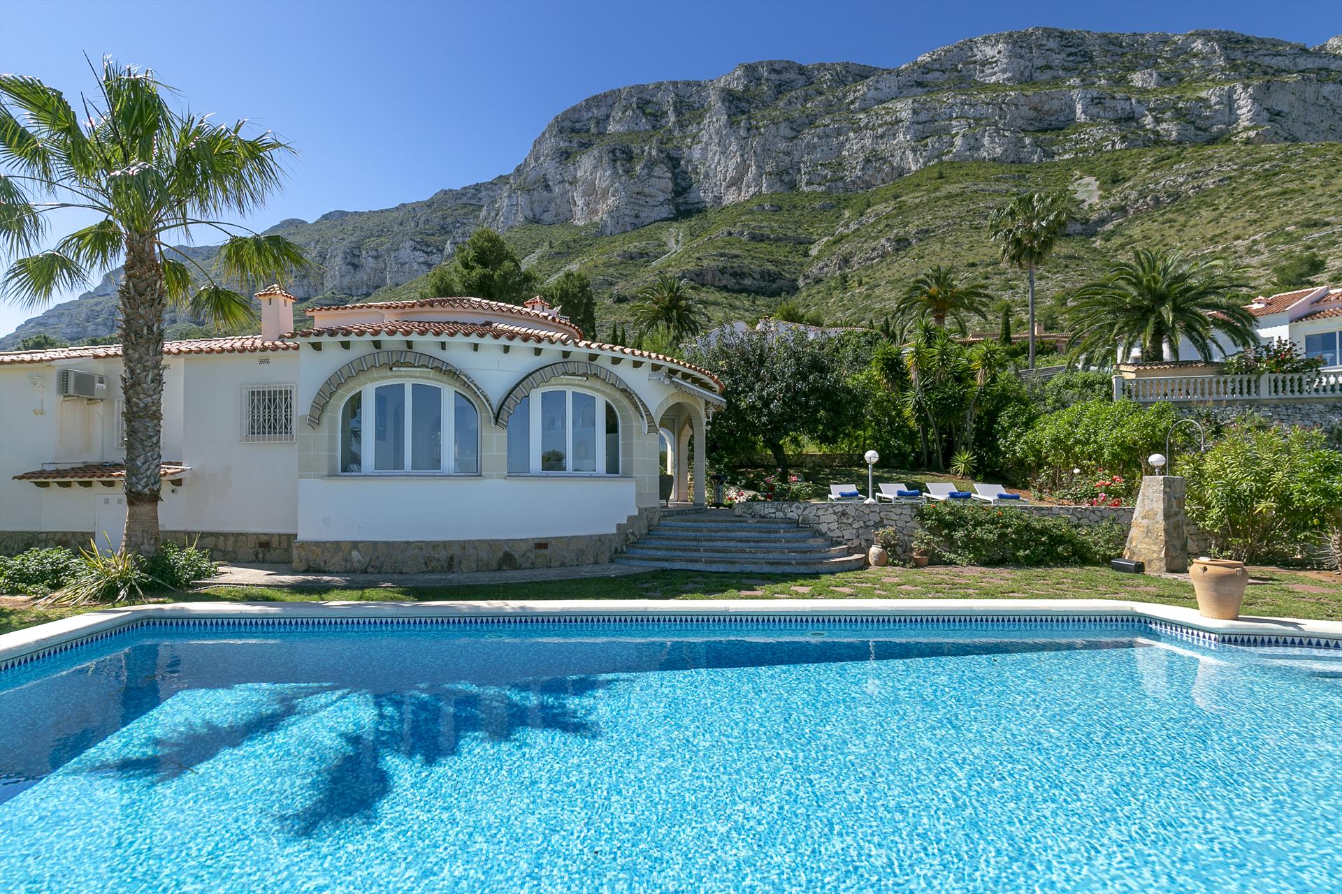 Comfortable villa with private pool in Denia, Costa Blanca, Spain for 4 persons. The house is situated in a residential and mountainous area and is 4 km from La Marineta beach.