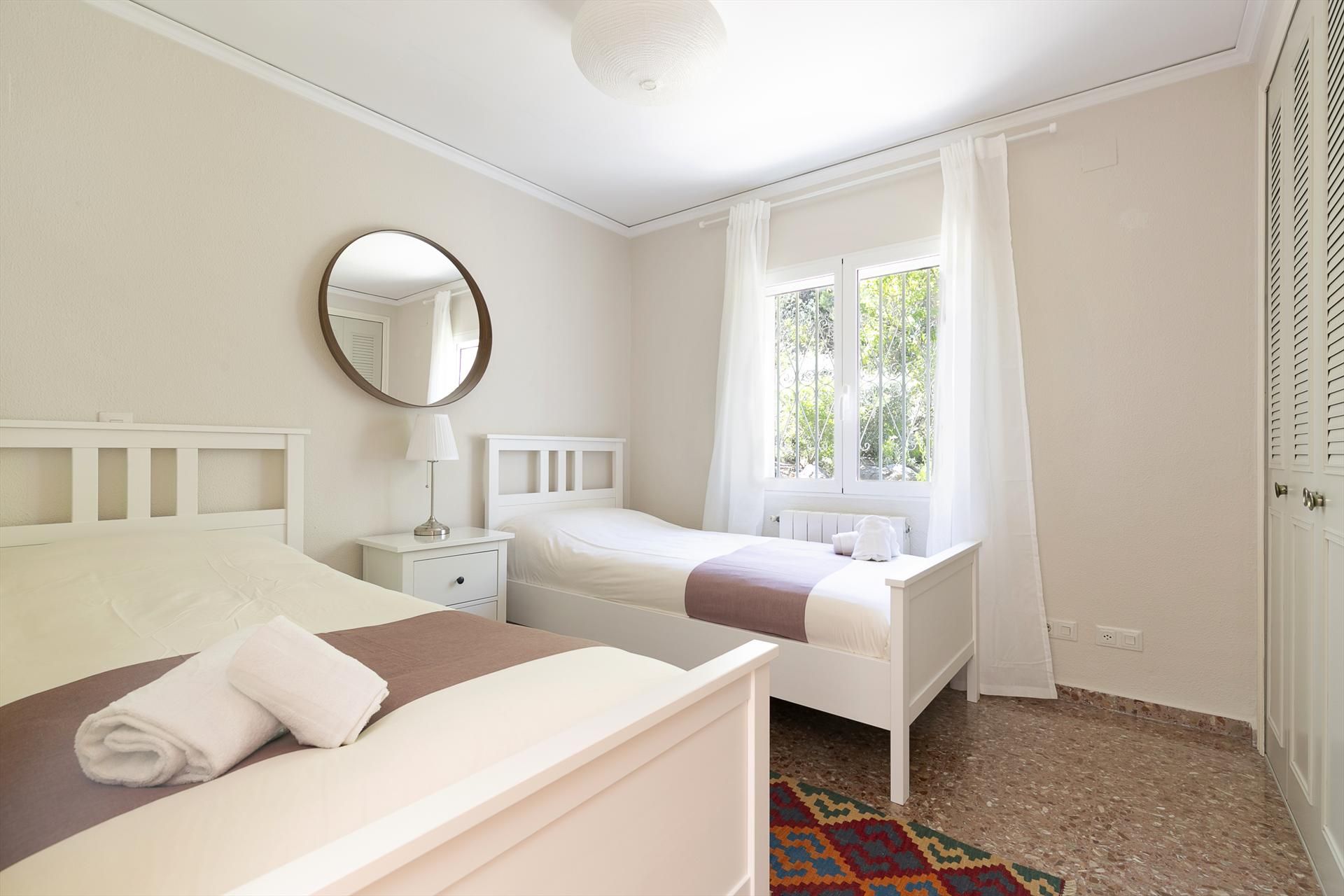 The house has 2 bedrooms and 2 bathrooms. The accommodation offers a lot of privacy, a beautiful lawned garden with trees, a lovely pool, wonderful views of the bay, the sea, the valley and the mountains, and beautiful views of the city. Its comfort and the proximity to the beach and sports activities make this a fine villa to spend your holidays in Spain with family or friends.