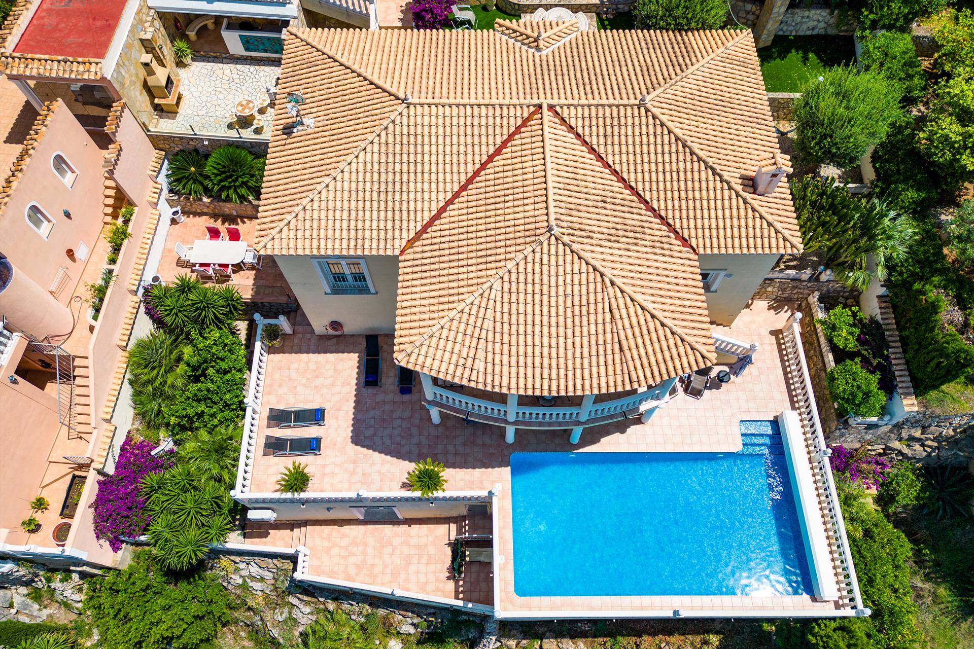 Comfortabele villa in Denia, Costa Blanca, Spanje met verwarmd zwembad voor 6 personen. Het huis is gelegen in een heuvelachtige woonwijk en ligt op 3 km van het strand van Las Marinas.